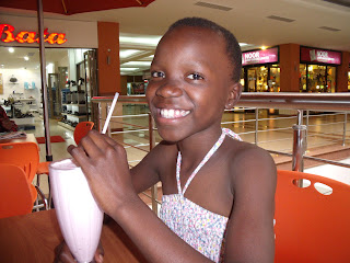 We were drained after all the waiting and then running about! It's surprising when you're in the heat, how quickly you need to rest. So we got a taxi to the shopping mall in Kampala and slumped in two chairs in the cafe there, ordering a strawberry milkshake each.